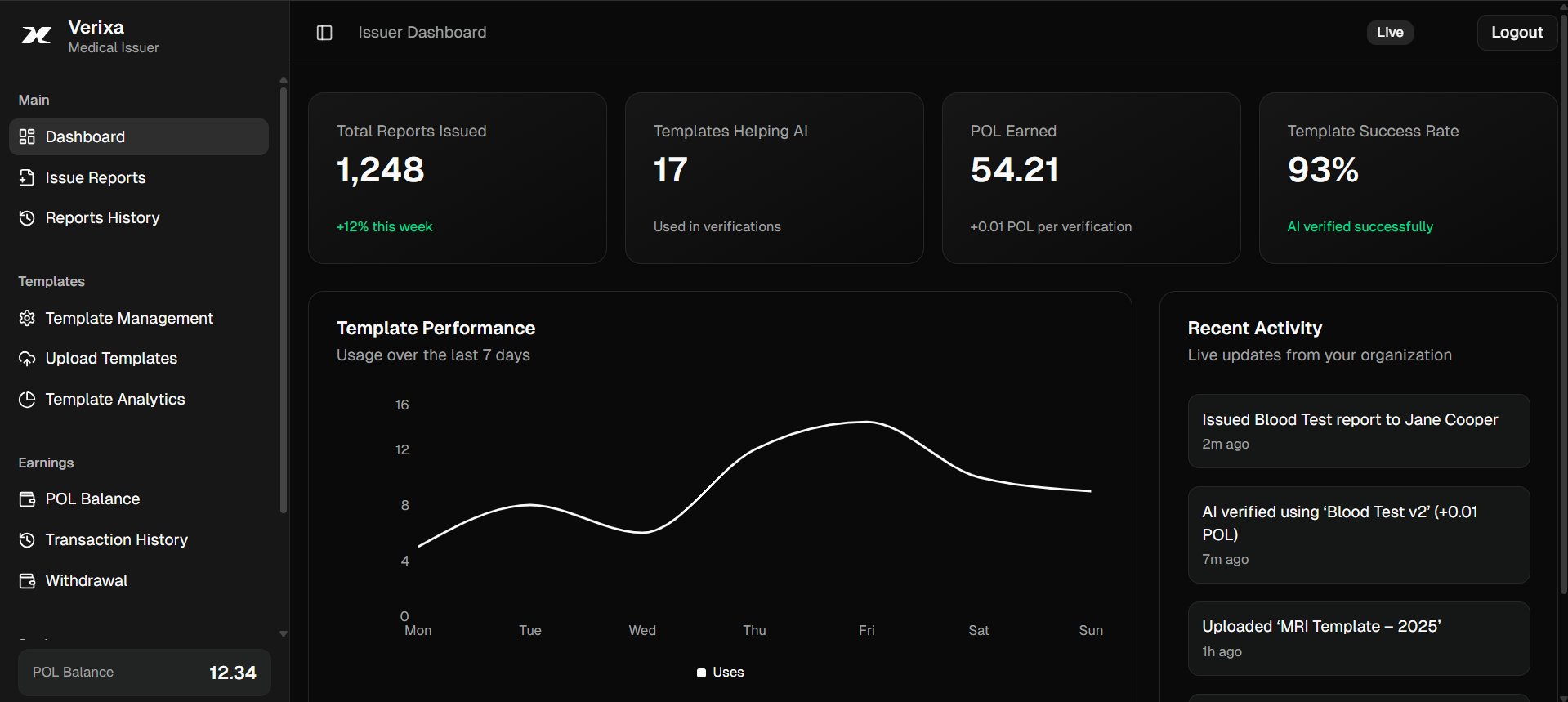 - Issuer actions are performed from the dashboard’s “Issue Reports” view.